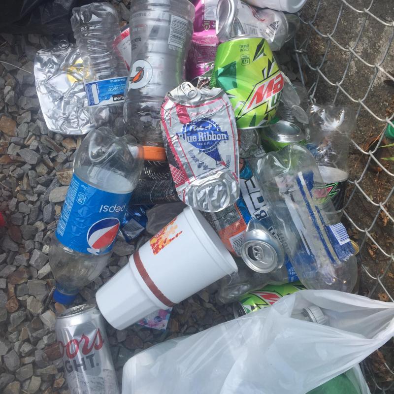 Forgot our bag , but found this giant black garbage bag and 50 recyclables in a 1 mile walk. Yikes people! Stop destroying our Earth with your trash. That makes 519 recyclables since April.