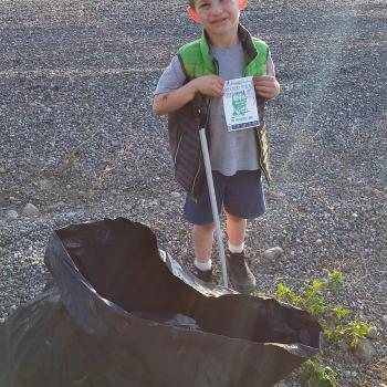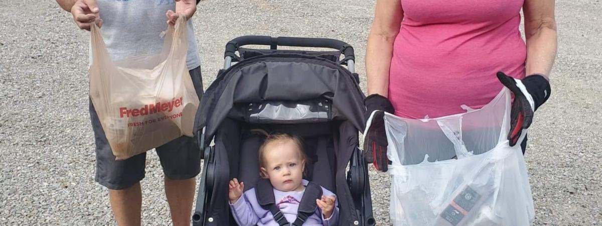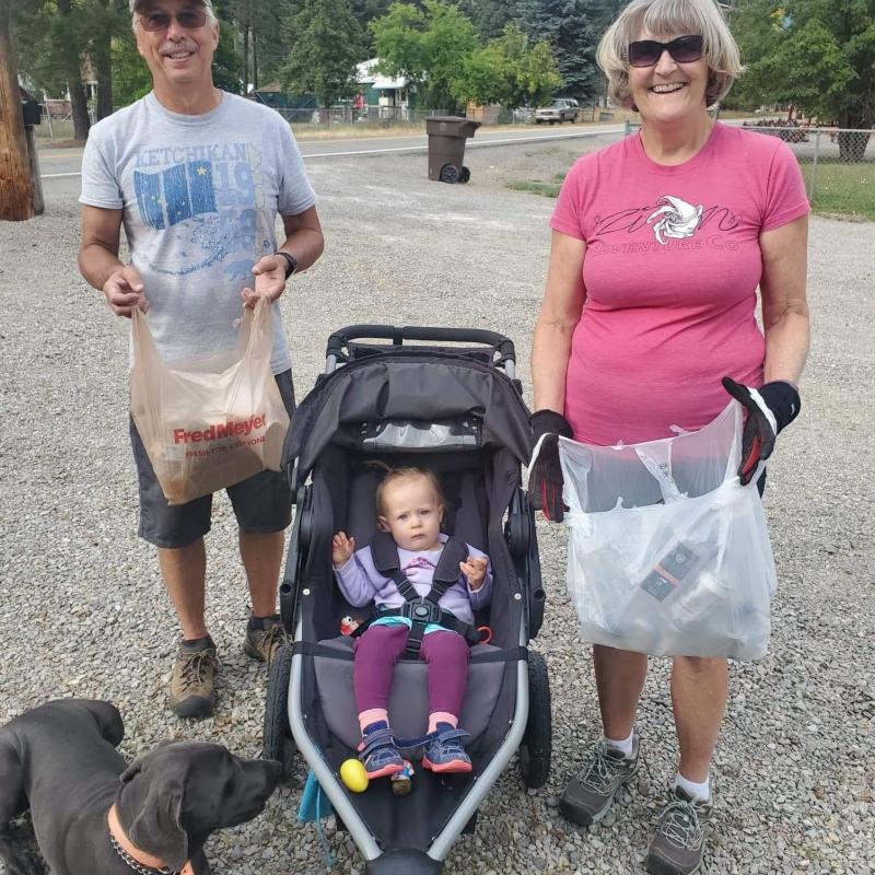 We picked up 1 bag of garbage and 1 bag of recyclables while walking with Elsie and Cedar.