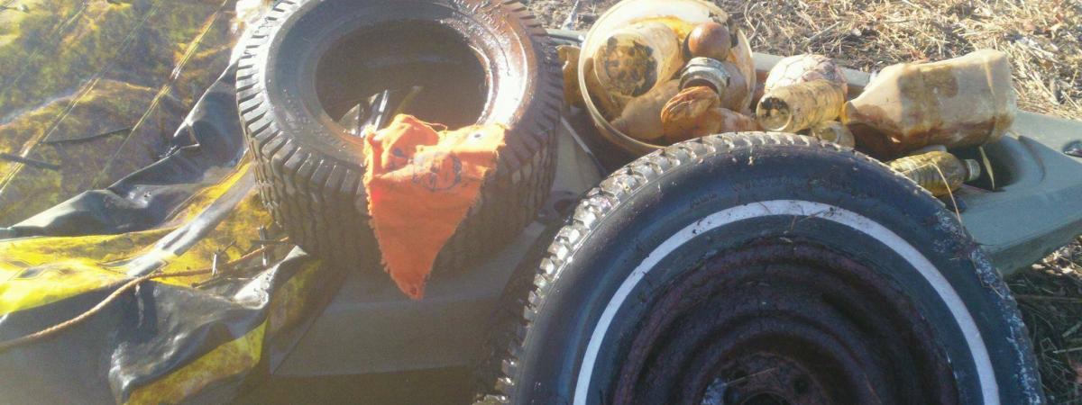 Brrrr! Should have wore some gloves today for this paddle. First time out this year. Got 2 tires, some recyclables and a torn raft out of my river. Had to cut it short as I couldn't feel my fingers. -Submitted by Christopher Eskesen