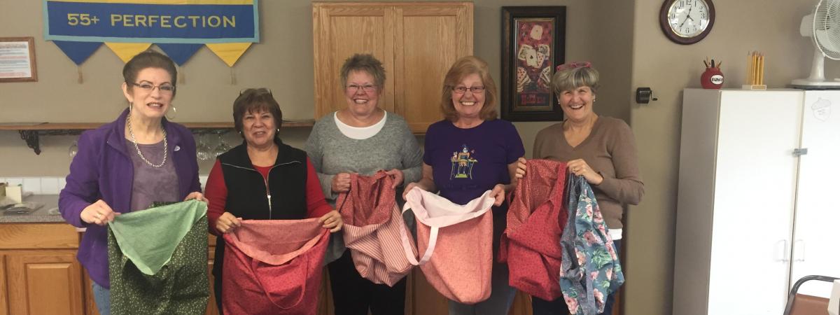 Today at Needle Nuts I showed the girls how to make a reusable grocery bag from donated fabric. Together we made 5 new bags and shared idea with other members who plan to make one at home.