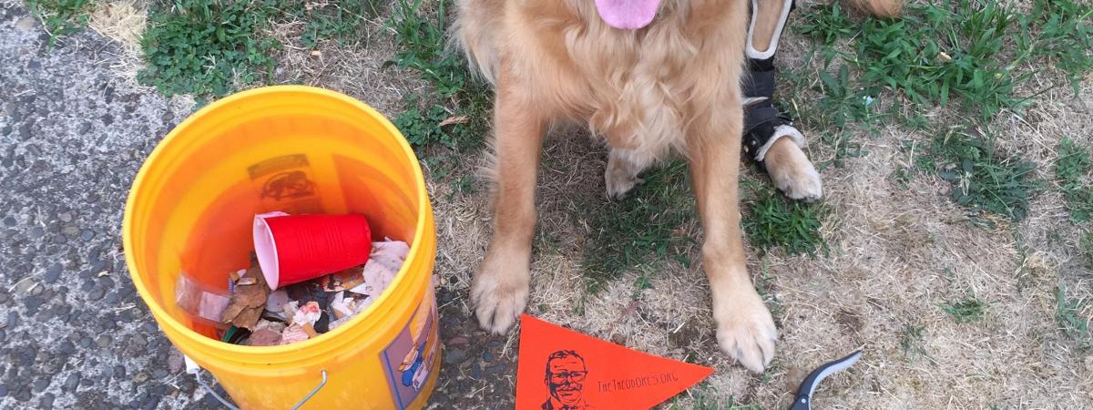What You Did: Walked through the neighborhood and picked up a lot of plastics. Hudson, as always, provided moral support as he watered the lawns. Number of lbs. Collected: 5Number of Participants: 3Mode of Transportation: HikingWhere You Were: City Streets Share this: