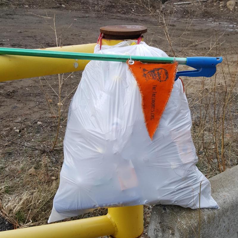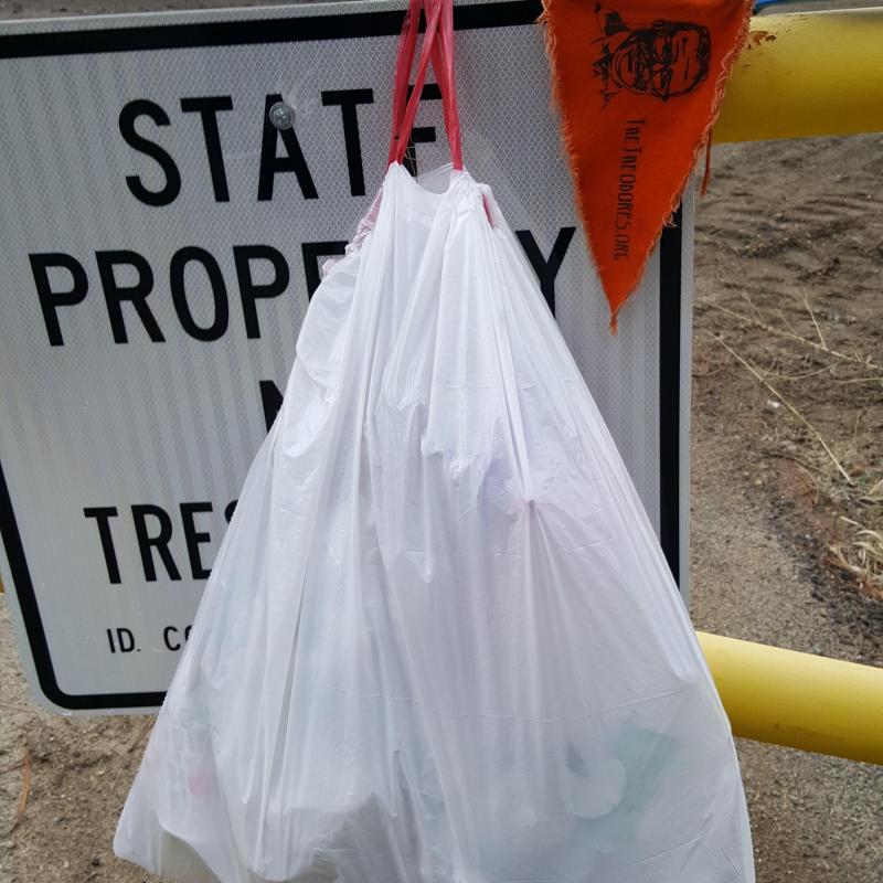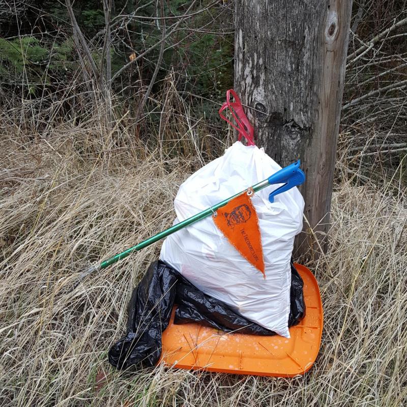 Litter pick up which was greatly Underestimated. the amount of trash left behind by inconsiderate citizens far exceeded my three bags for trash. Sadly the walk was only a half mile up the road and then back down the other side.