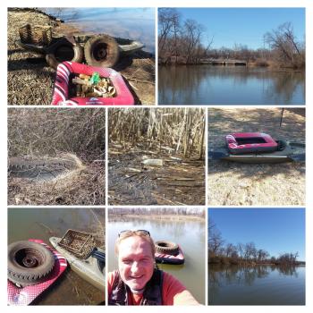 Went out today and got 'er done. 105 Recyclables, 2 Tires and some weird garbage including a Christmas decoration and a pillow. My guess is someone was sleeping with the fishes. #CLEANWATER #TEDDY #GETDIRTY #POLLUTIONSUCKS #DOWHATYOUCAN