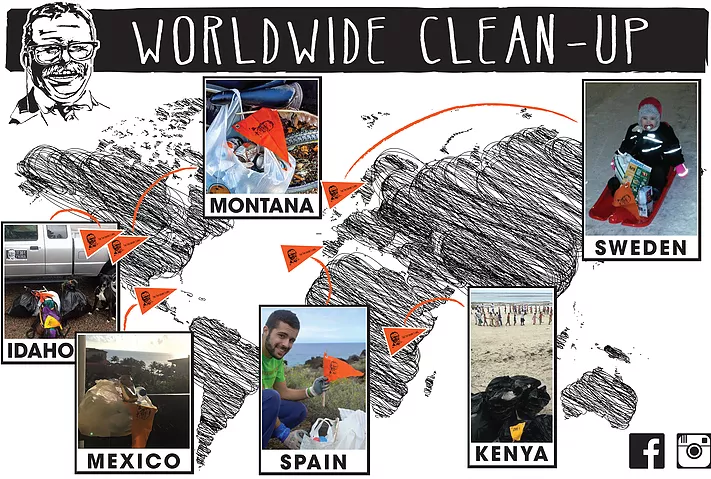 By simply buying an item with a Teddy screen print you are making a difference. In addition to supporting us financially- which is awesome and allows us to organize clean-ups and conservation education- we ask one additional favor. To be a part of this movement, simply wear your item and do a clean-up. Start small. If you see trash on your favorite walk or hike pick it up, plant your Teddy flag, and post a picture to our Facebook page or website thetheodores.org. It can be done individually or in a large groups.